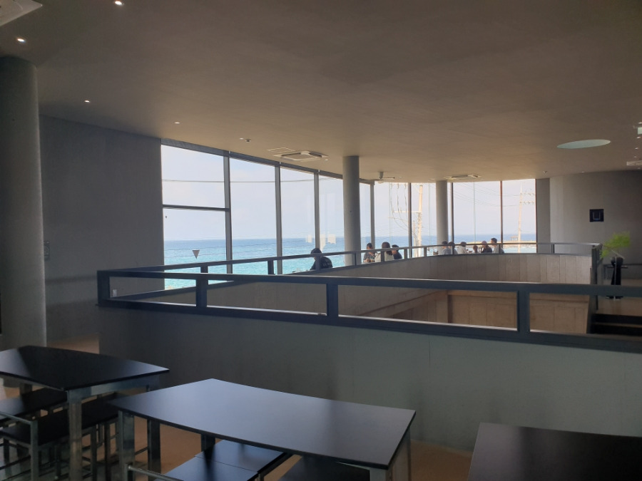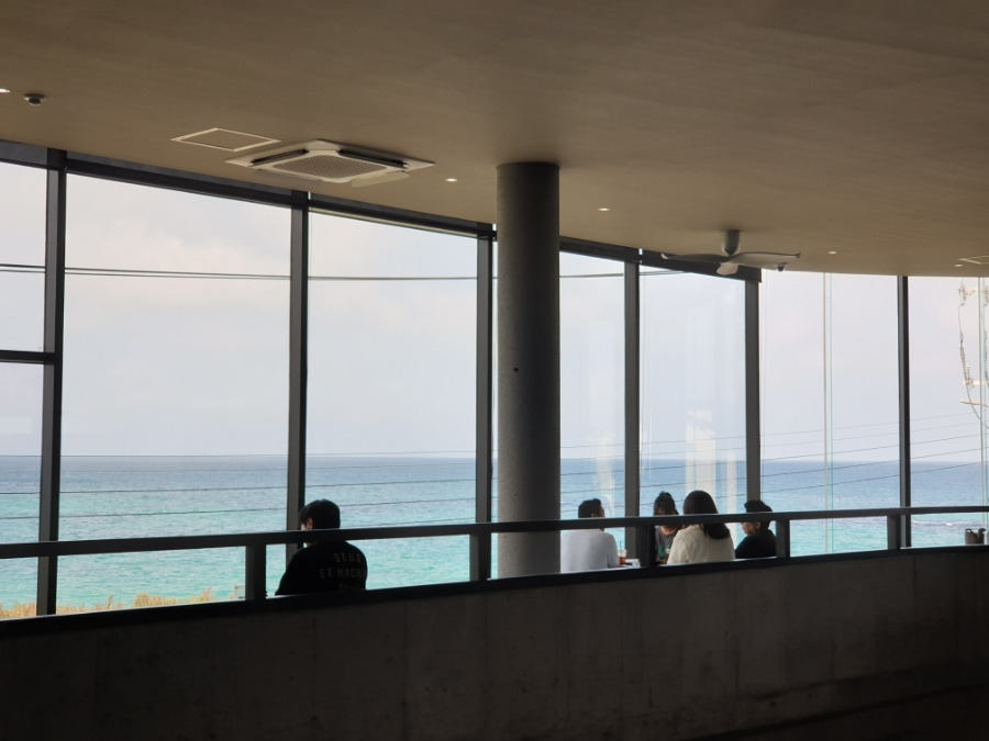 아쉽게도 2층 메인 오션뷰 자리에는 앉지 못했지만, 사이드 쪽 자리에 앉아도 창문 사이로 바다가 살짝 보입니다