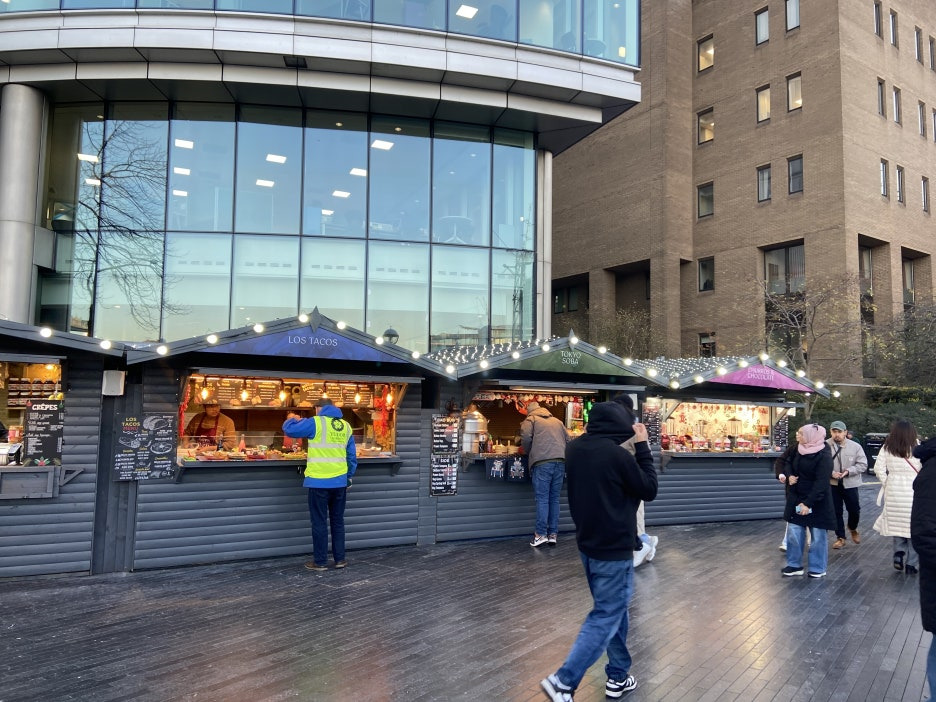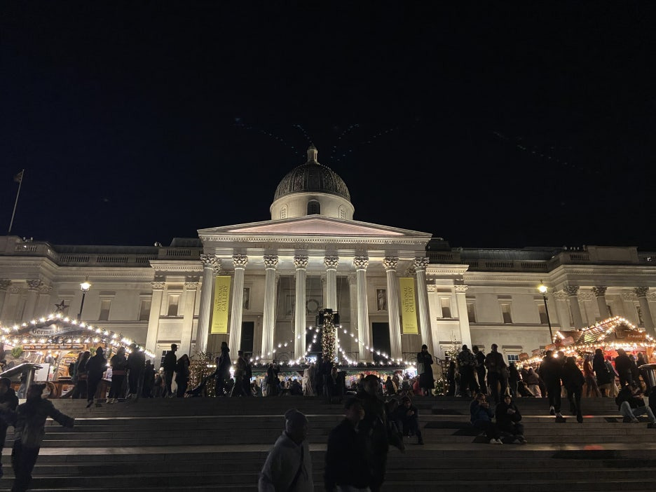 트라팔가 광장에 있는 내셔널 갤러리 앞에서 작은 크리스마스 마켓이 펼쳐졌습니다