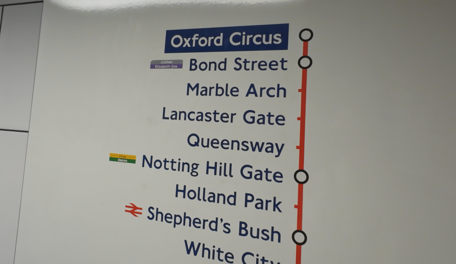 피카딜리 서커스 역에서 Central line 라인으로 갈아타서,