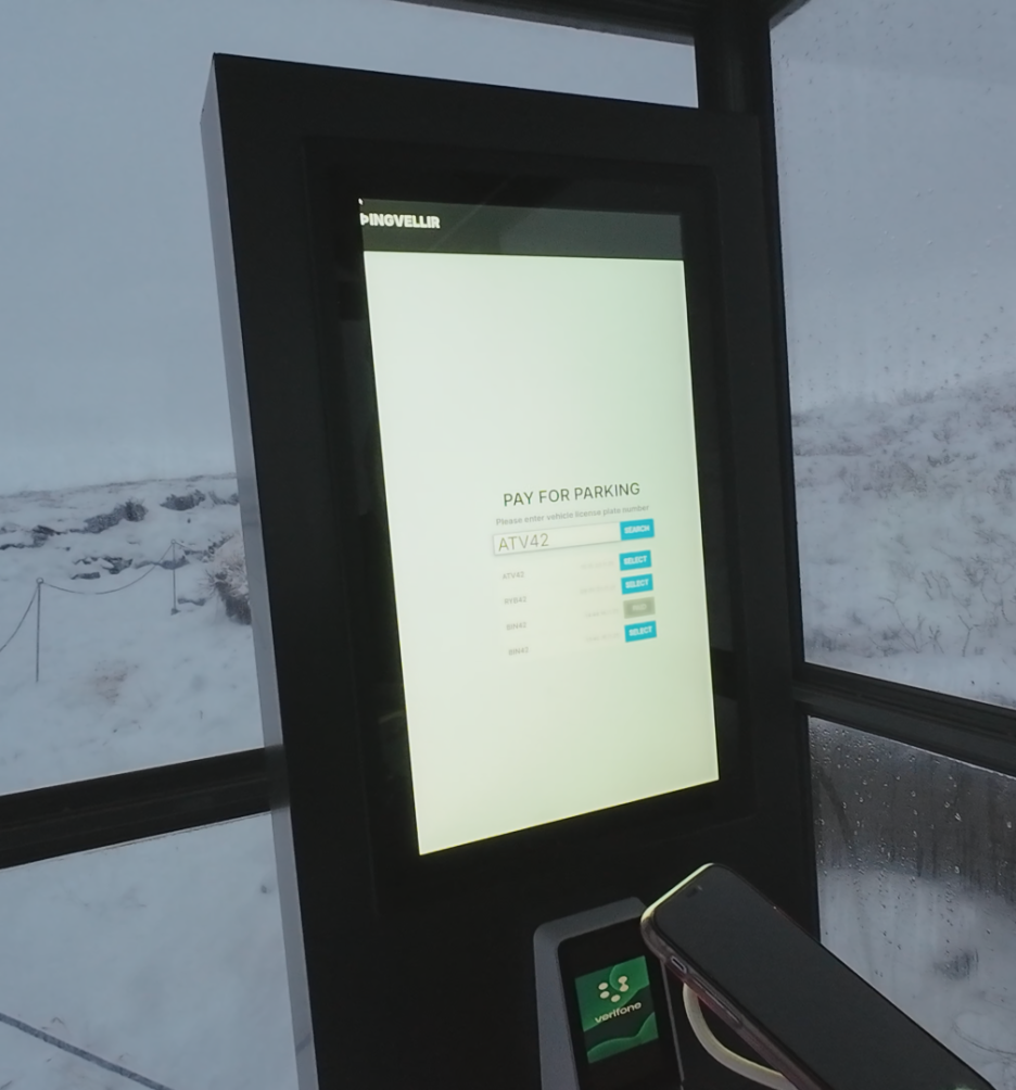 아이슬란드 주요 관광지는 대부분 유료 주차장이라서, 이렇게 생긴 주차 부스에서 주차요금을 결제해야 합니다