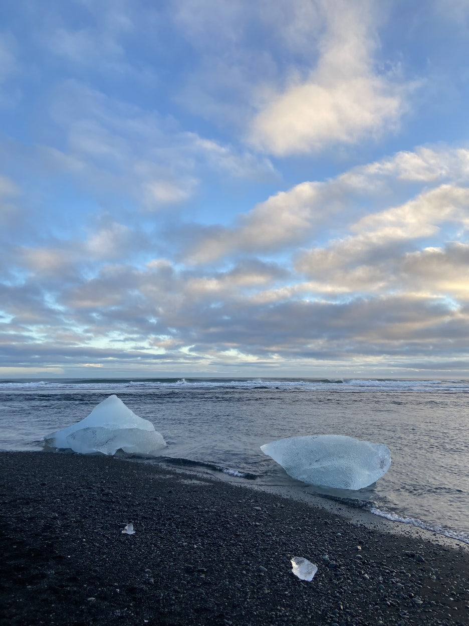 정말로 해변에 얼음 덩어리들이 있었습니다