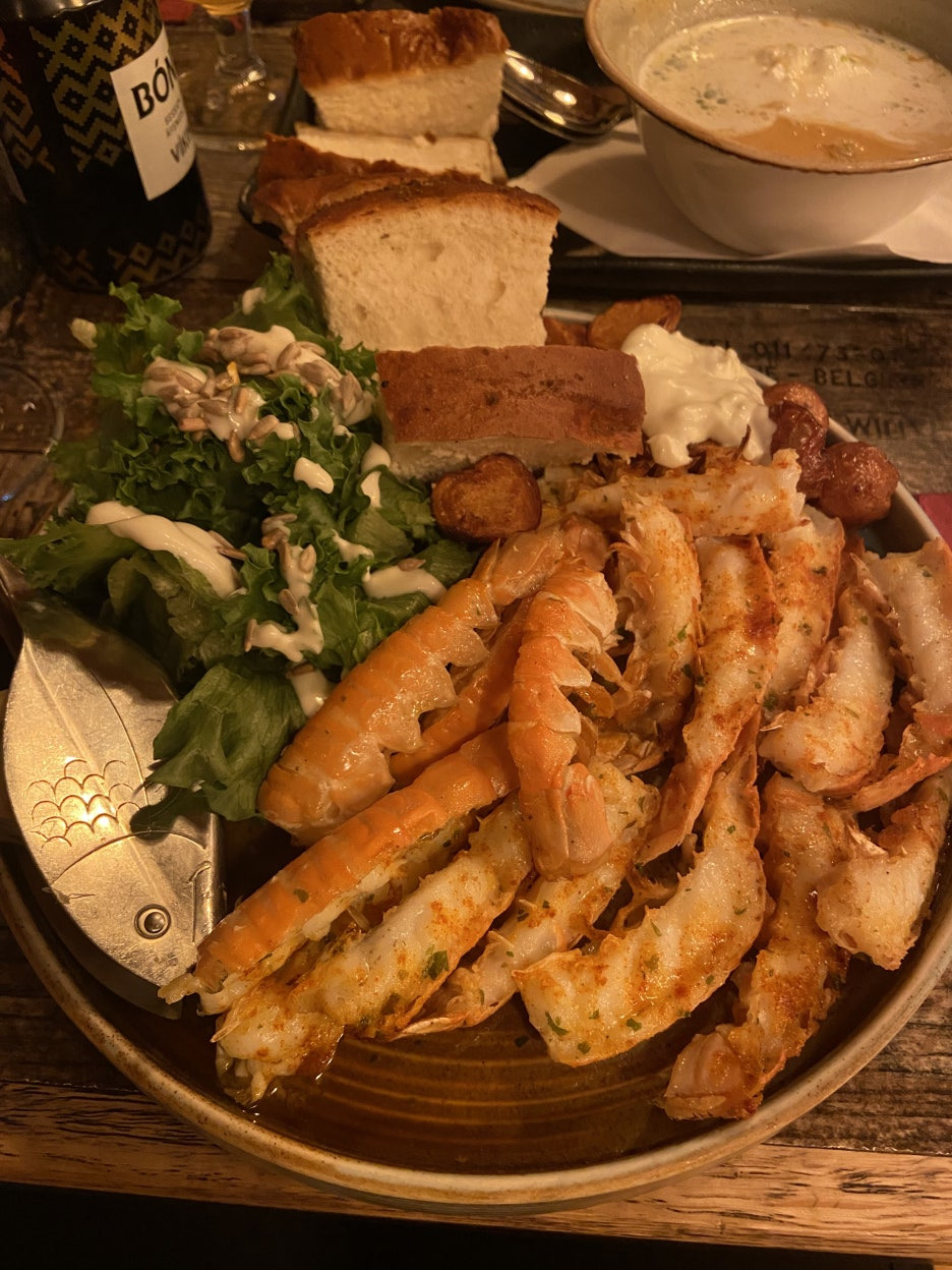 랑구스틴 스프와 양고기 스테이크, 그리고 랑구스틴 구이를 주문했습니다