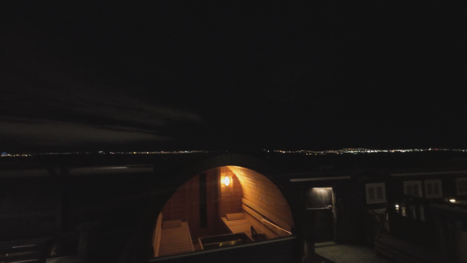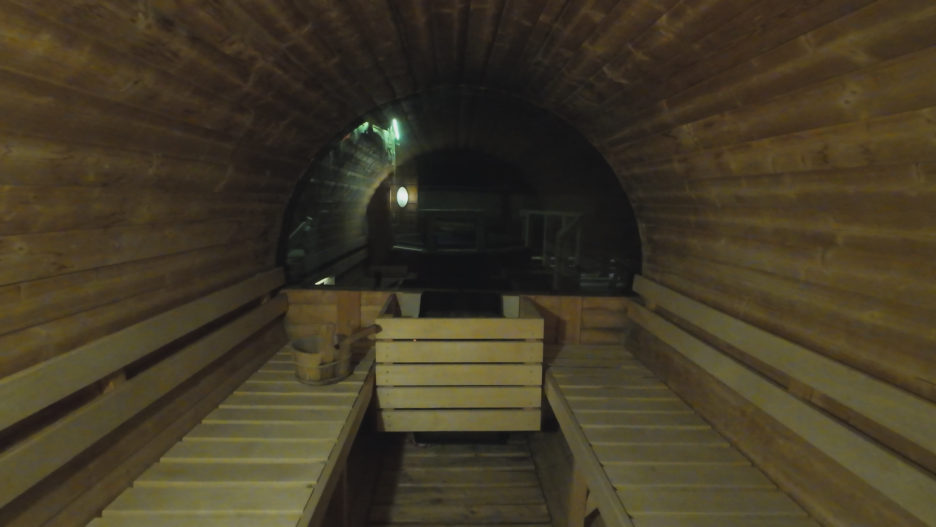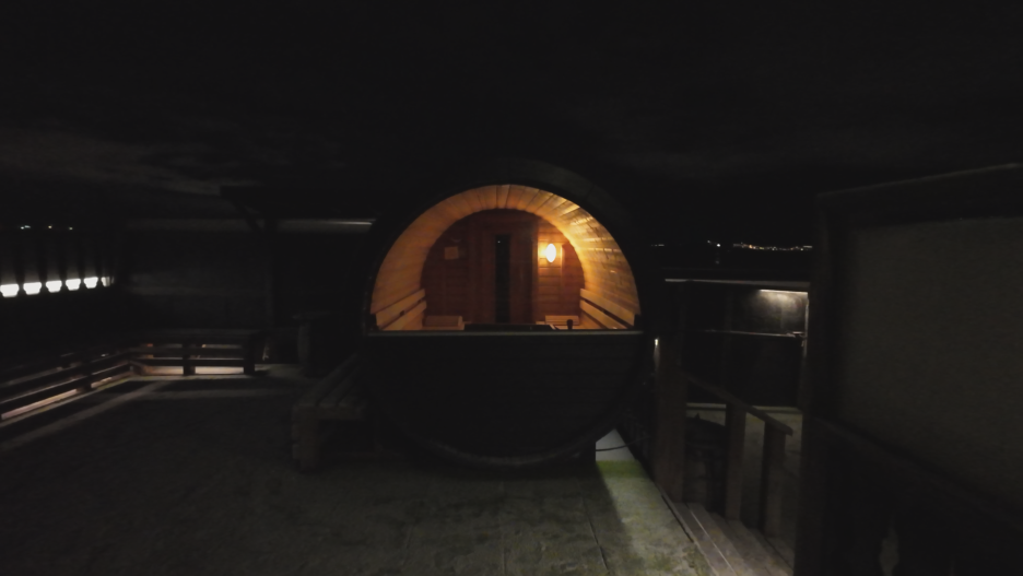 그리고 욕조 근처에 이렇게 미니 사우나도 있어서 추운 몸을 녹이기 딱 좋습니다