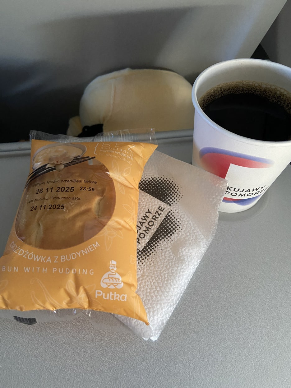 이동하는 동안 빵과 음료, 과자가 제공됩니다