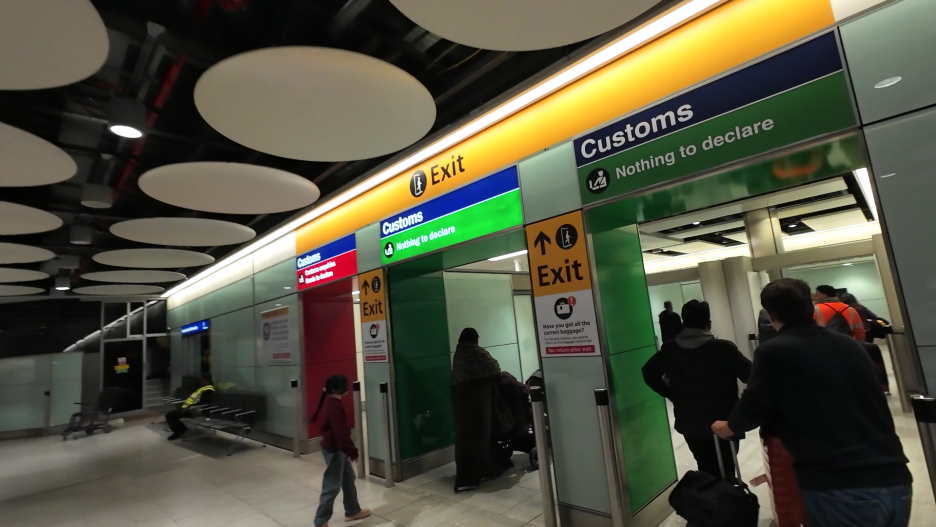 입국 수속을 마치고 짐을 찾은 뒤에,