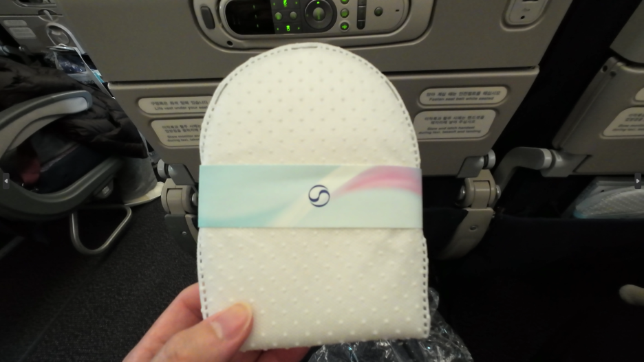 물, 이어폰, 슬리퍼, 담요, 베개가 제공됩니다