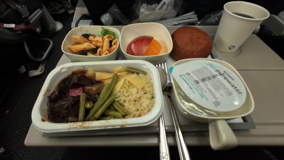 총 14시간의 비행동안 2번의 기내식과 1번의 간식이 제공되는데, 전체적으로 아주 맛있었습니다