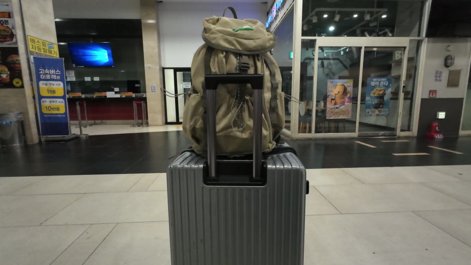 원주 터미널에서 인천공항까지 가는 첫차를 탔습니다