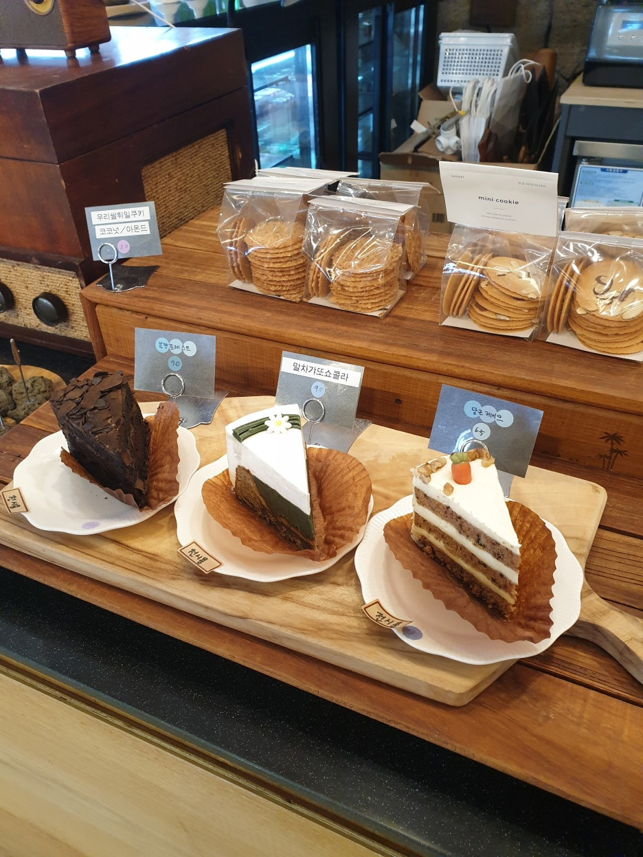 해안도로에 있는 카페들처럼 바다가 시원하게 보이는 것은 아니지만, 2층 창가쪽에 앉으면 바다를 볼 수 있습니다