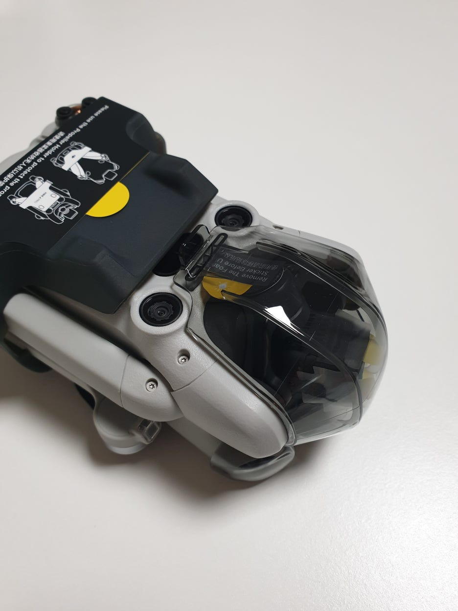 드론 본체로 돌아와서, 짐벌 보호대를 먼저 벗겨보았습니다