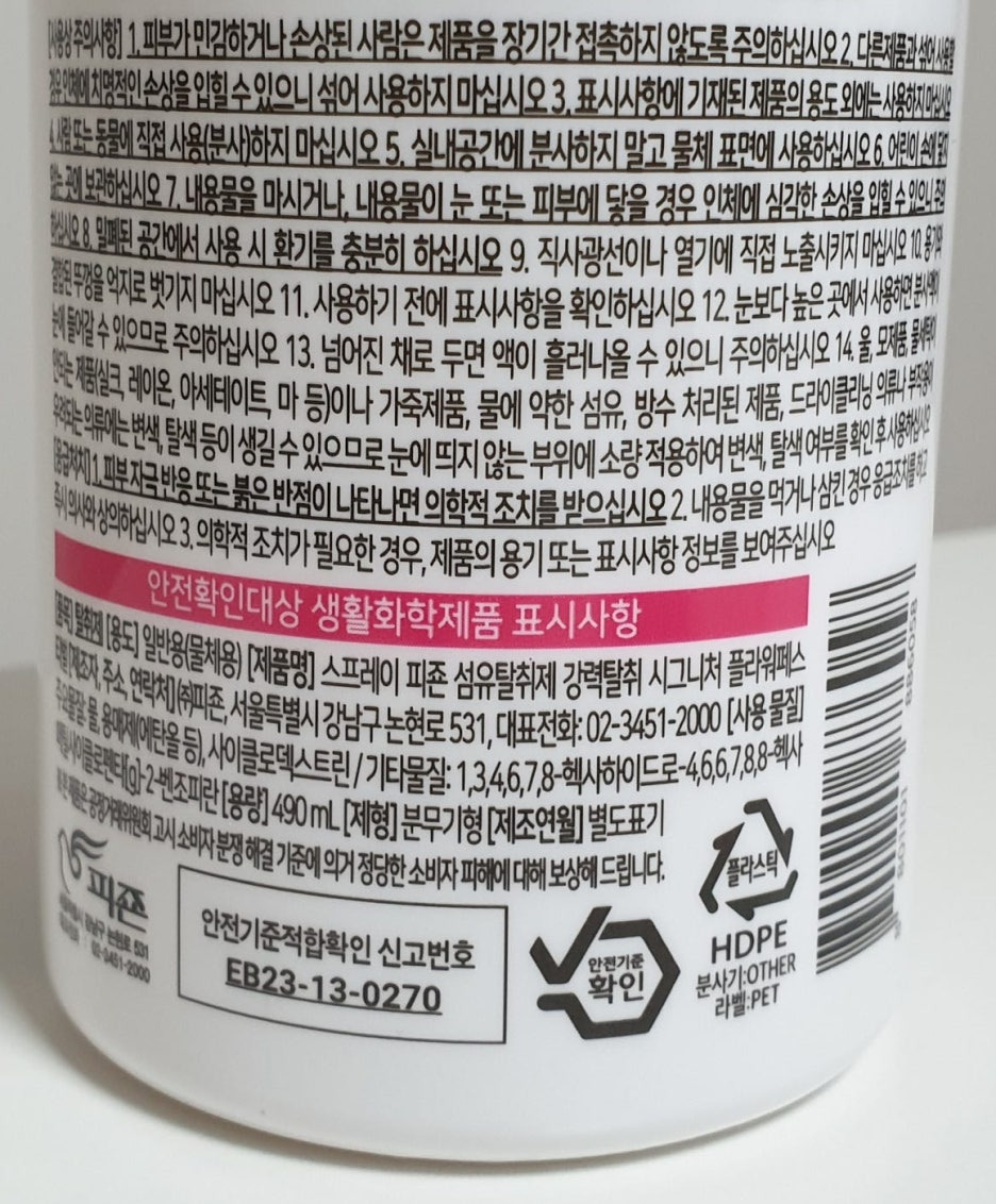 빨래를 집 안에서 널다보니 옷에서 계속 꿉꿉한 냄새가 났었는데, 옷이 마른 뒤에 이 제품을 옷에 뿌렸더니 꿉꿉한 냄새는 사라지고 꽃 향기가 나서 현재까지도 아주 잘 사용하고 있습니다