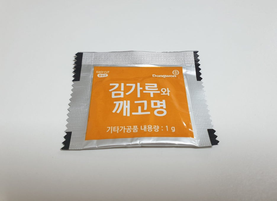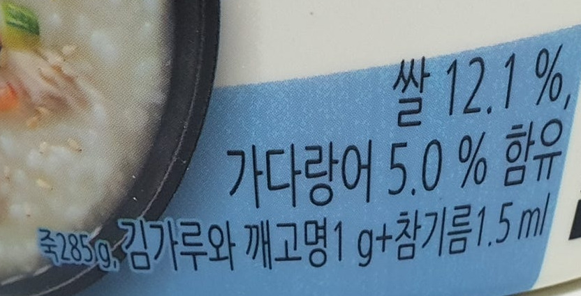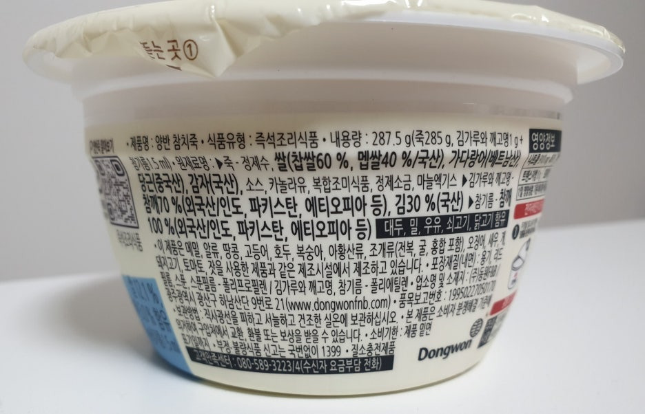 죽 285g, 김가루와 깨고명 1g, 참기름 1.5ml