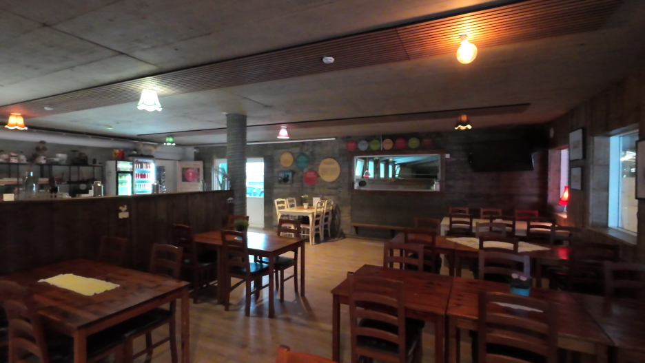 1층은 아이스크림와 카페, 2층은 레스토랑과 바 입니다