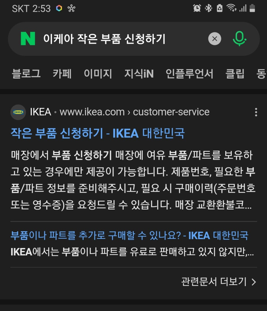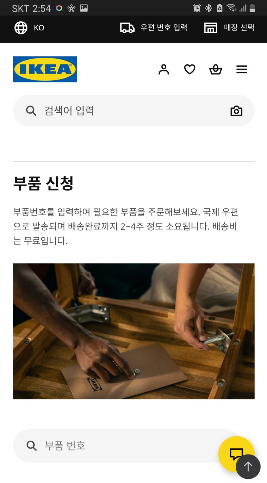 이케아 홈페이지 '작은 부품 신청하기'로 들어갑니다