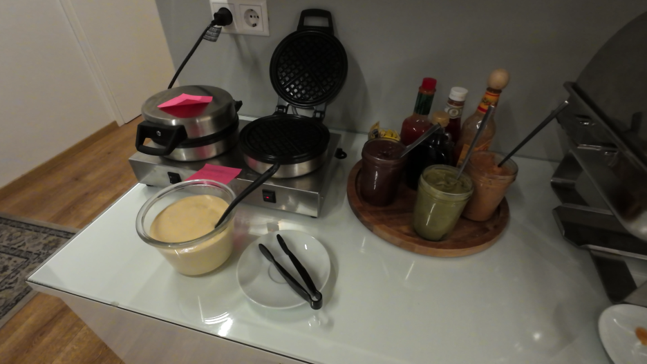와플을 셀프로 해먹을 수 있는 점이 신기했습니다