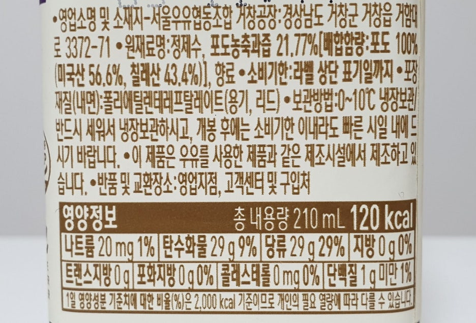 포도농축과즙 21.77%(배합함량 : 포도 100%)