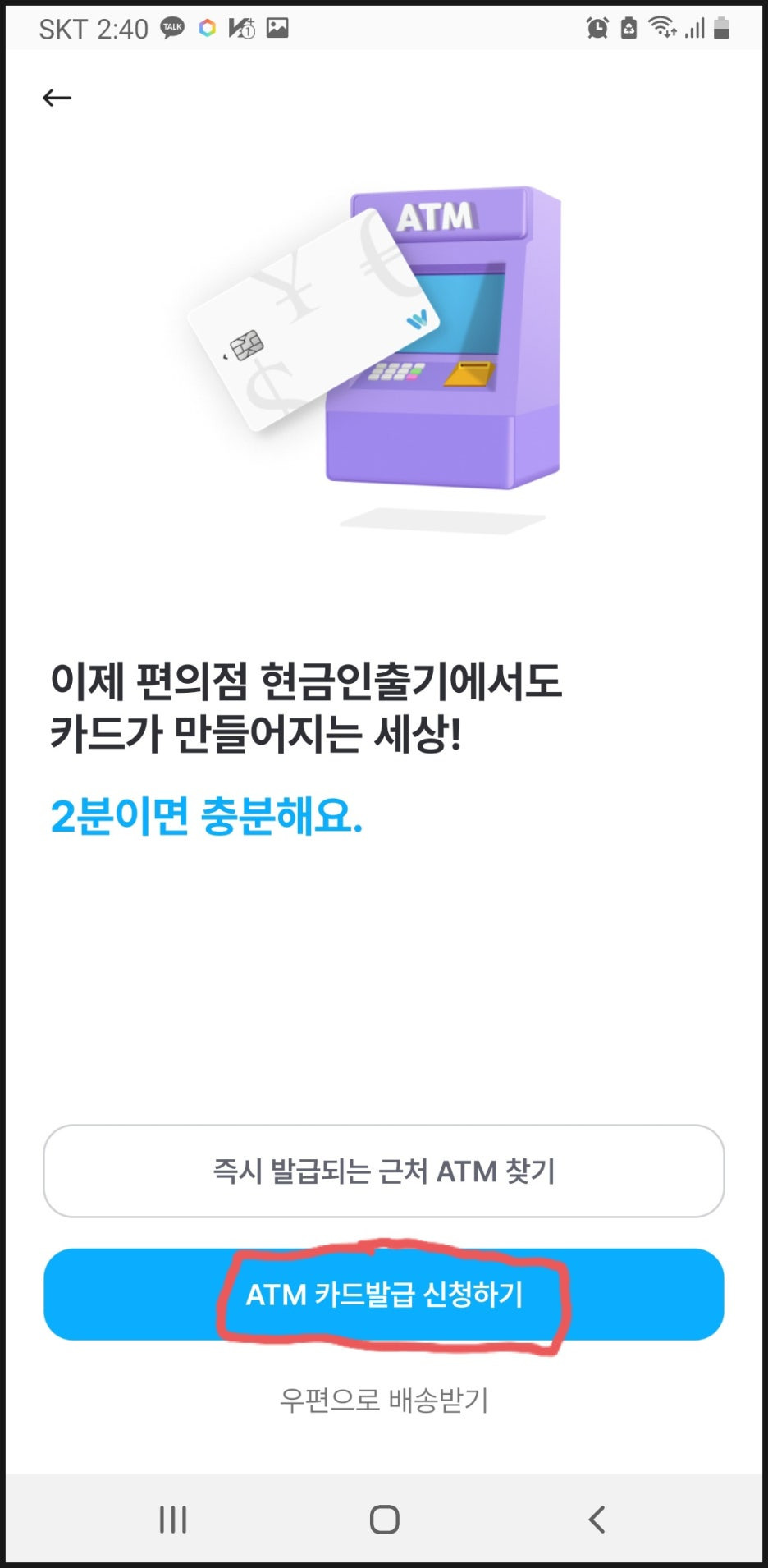 이제 'ATM 카드발급 신청하기' 버튼을 터치합니다