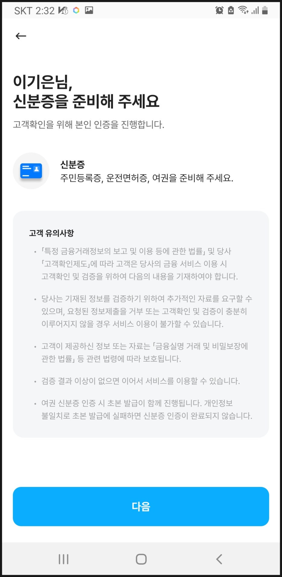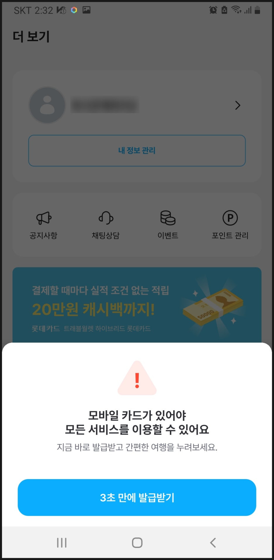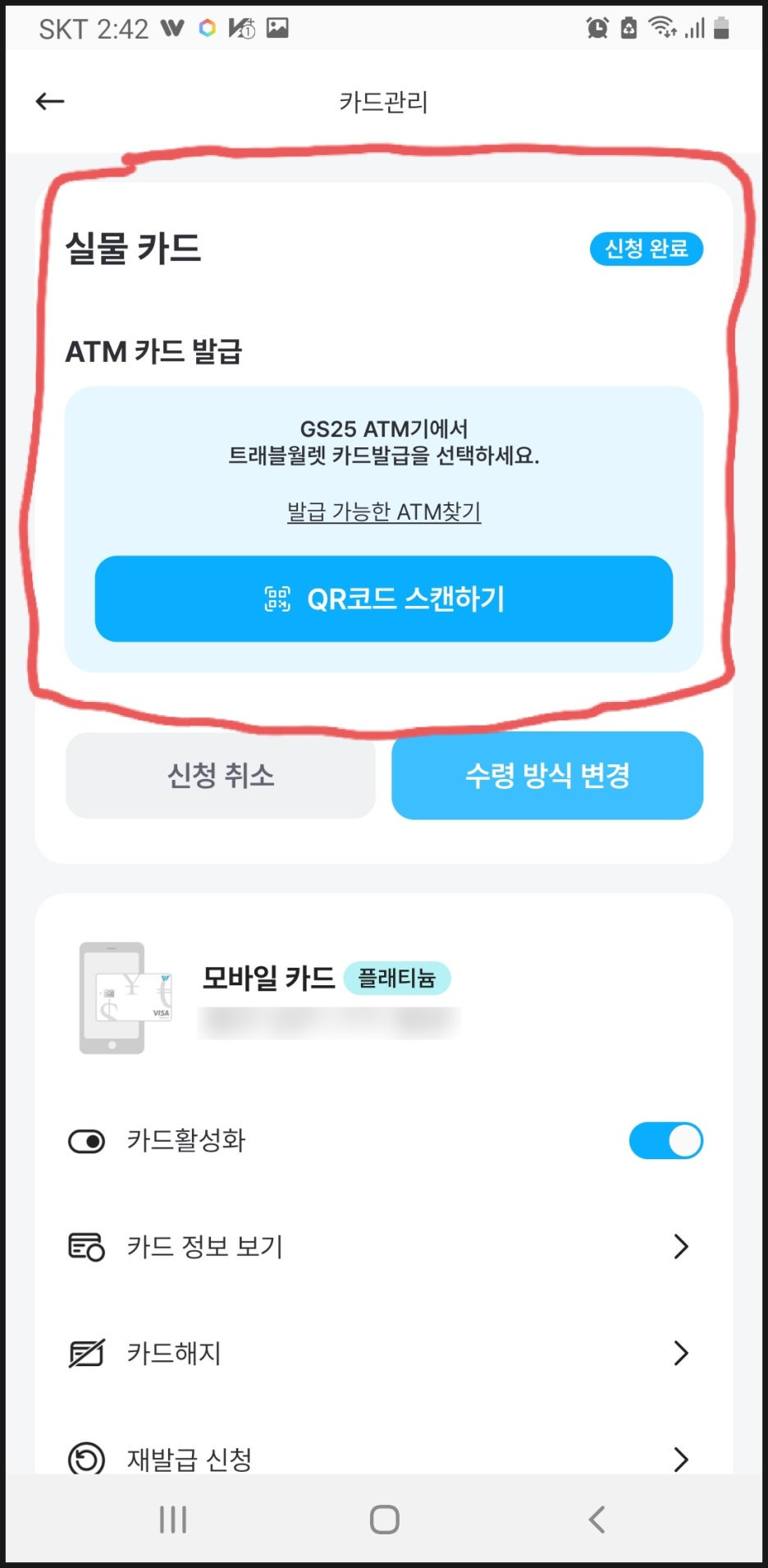 실물카드를 신청하려면 먼저 모바일 카드가 있어야 합니다
