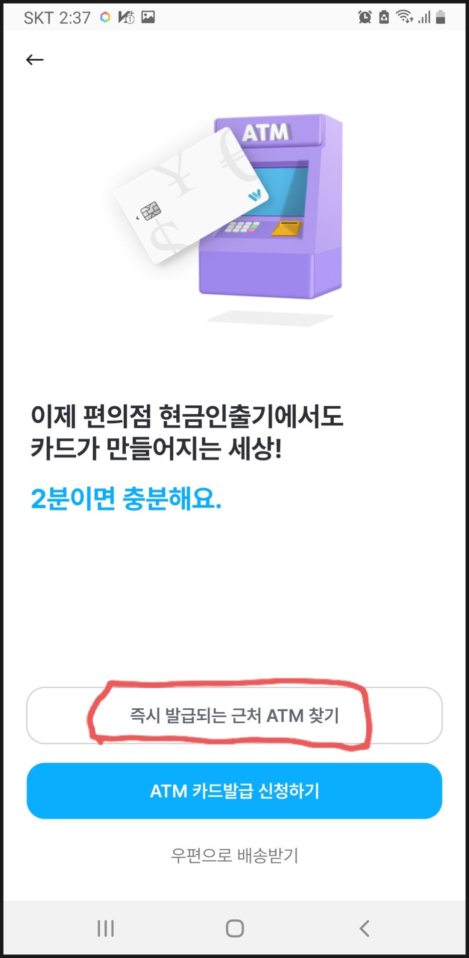 일단 '즉시 발급되는 근처 ATM찾기' 버튼을 터치합니다