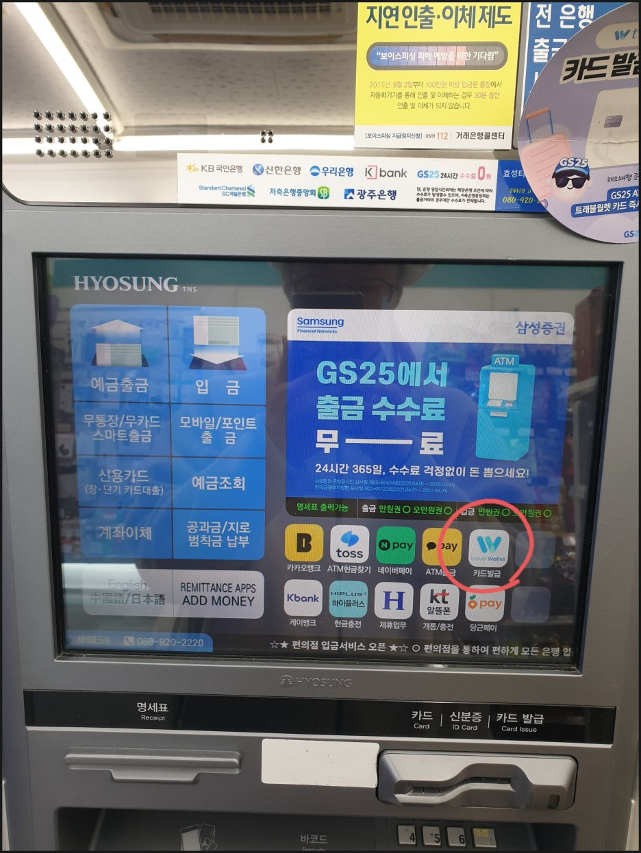 GS편의점에 있는 ATM에서 카드를 수령할 수 있습니다