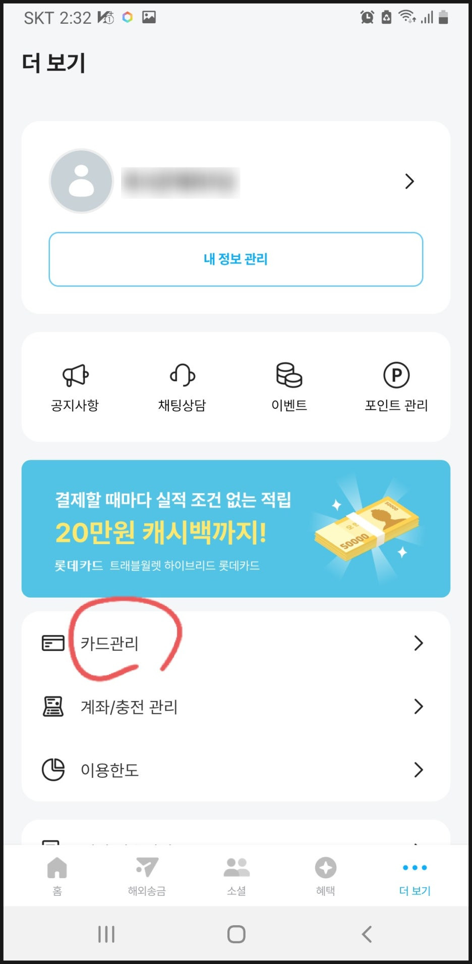 마지막으로 카드관리에서 '카드 등록'을 하면,