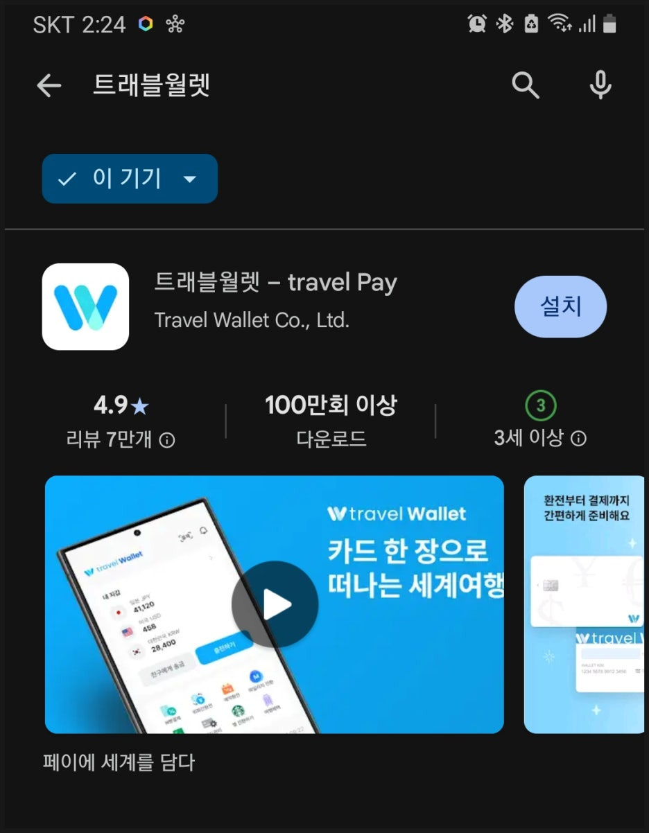구글 스토어에서 '트래블월렛'을 검색한 뒤 설치합니다