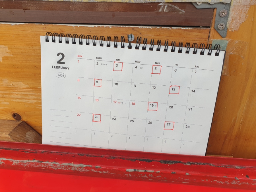 빨간색 네모로 되어있는 날이 제대병원 앞에서 영업하시는 날인가보네요