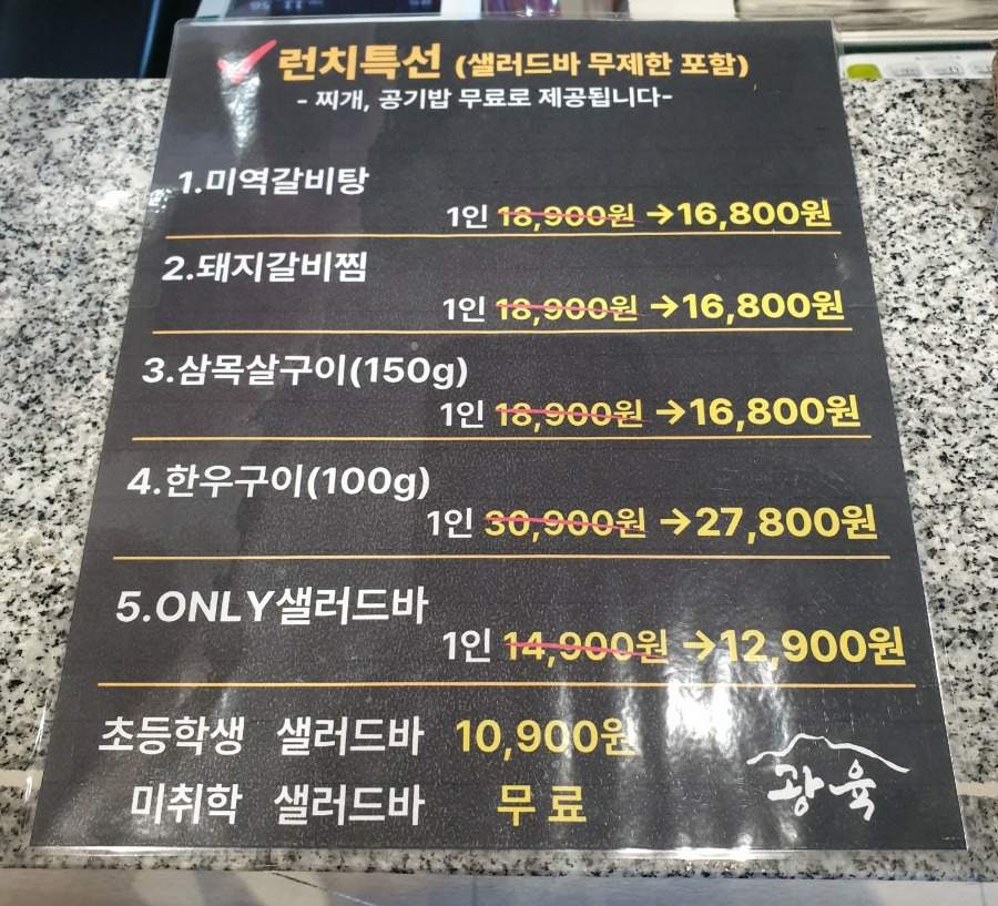 제주시 아라동에 있는 고깃집 "광육"에 점심특선을 먹으러 왔습니다