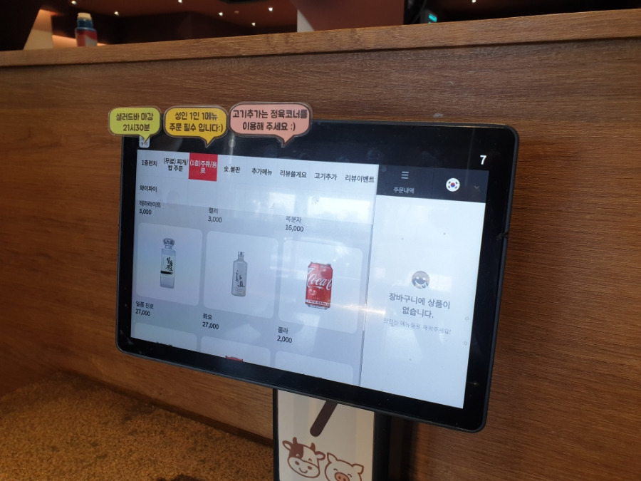 자리마다 있는 테이블 오더로 직접 주문하면됩니다