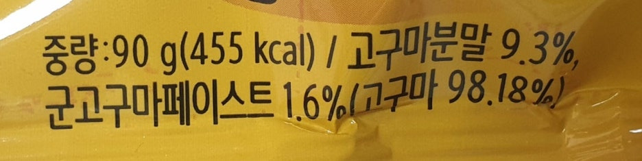 고구마분말 9.3%, 군고구마페이스트 1.6%(고구마 98.18%)