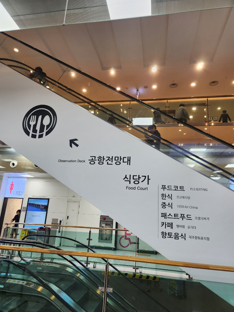 3층에 도착하면, 4층으로 올라가는 에스컬레이터 측면에 "공항전망대"라고 적혀 있습니다