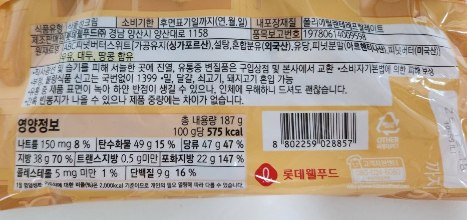 이번에 먹어본 제품은 롯데 ABC 피넛버터맛입니다