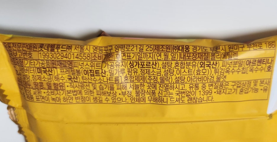 원재료 정보를 포함한 제품 정보가 적혀 있습니다