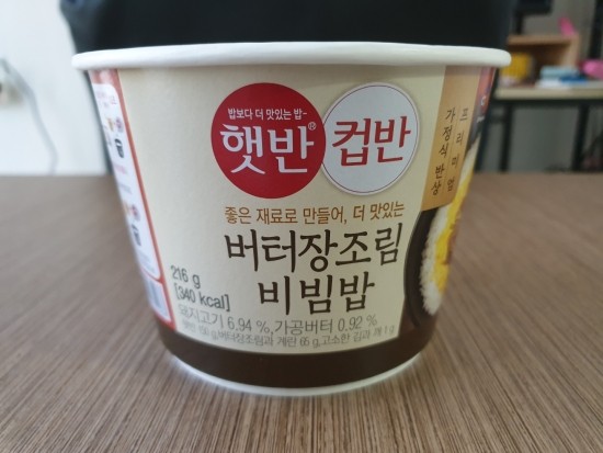 오늘 먹어본 컵밥은 버터 장조림 비빔밥 입니다.