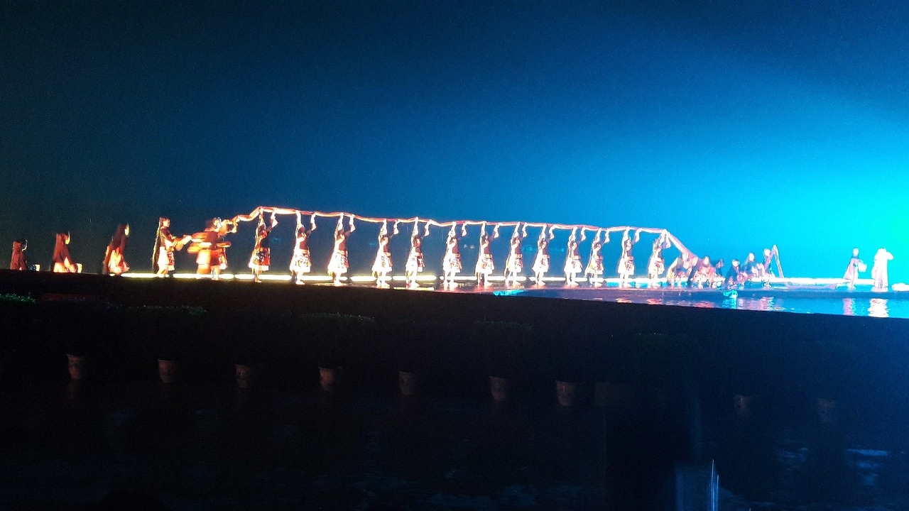 야간에 특별한 공연을 하고 있는 모습 입니다.