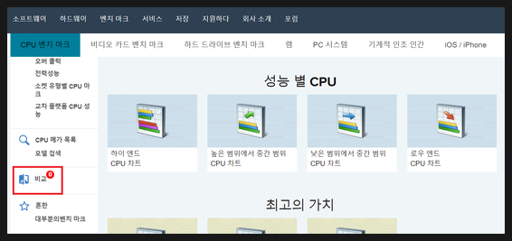 2. 화면을 쭉 내린 뒤 왼쪽 메뉴에 있는 [비교] 선택