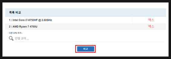 4. 비교를 원하는 부품을 추가한 뒤 [비교] 버튼 클릭
