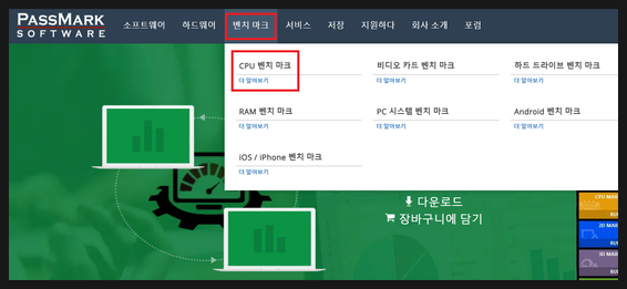 1. 사이트에 접속한 뒤 [벤치 마크] → [원하는 부품의 벤치 마크] 선택