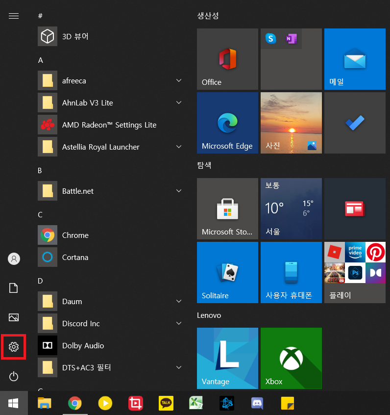 1. 윈도우 키를 누르고 톱니바퀴 아이콘을 클릭
