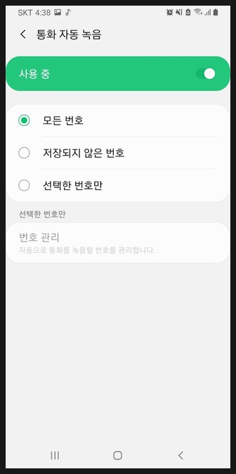 통화 녹음을 할 번호를 설정할 수도 있습니다.