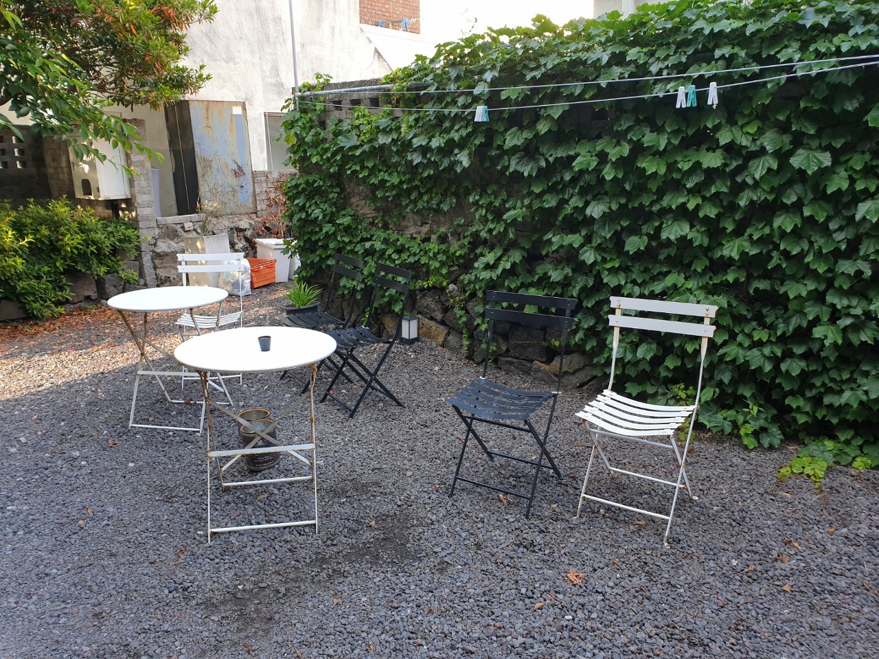 문 앞에 있는 야외에 앉을 수 있는 작은 테이블도 있네요.