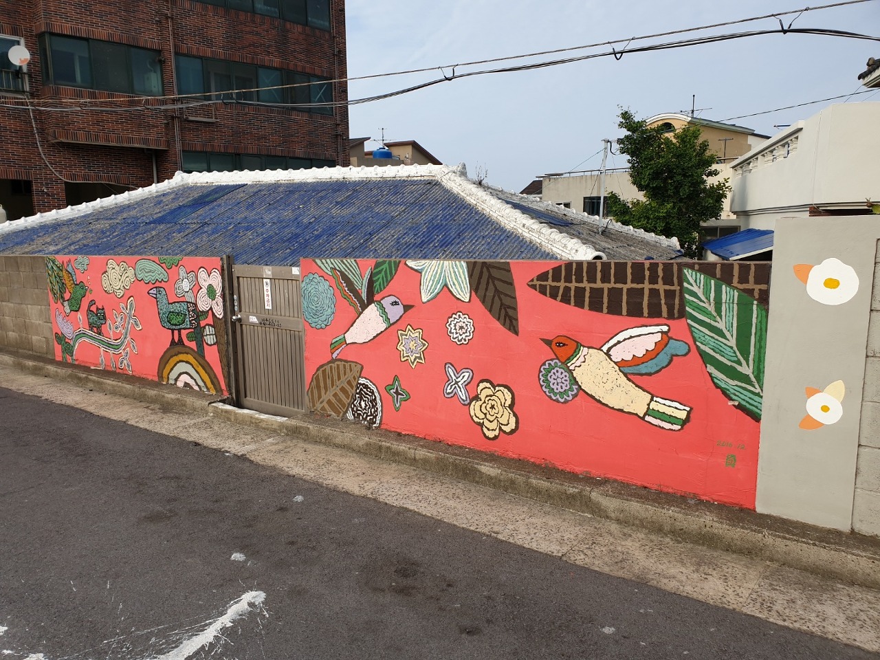아무래도 집 주인이 동의한 집 앞에만 벽화가 그려져 있는 것 같습니다.