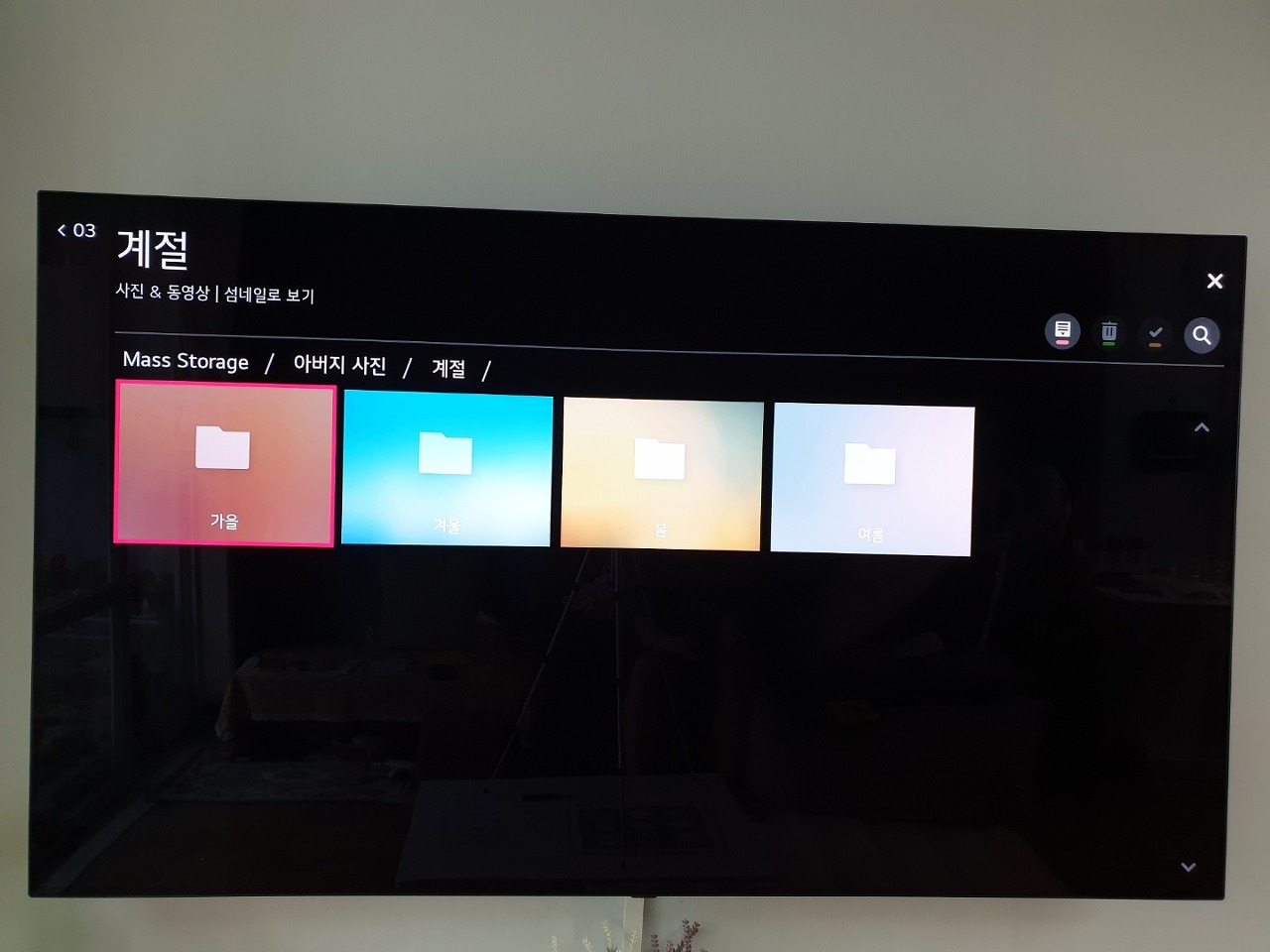 2. 리모컨에서 홈 버튼을 누른 뒤에 [사진&동영상]으로 진입 합니다.
