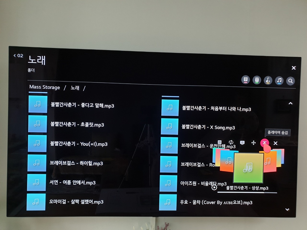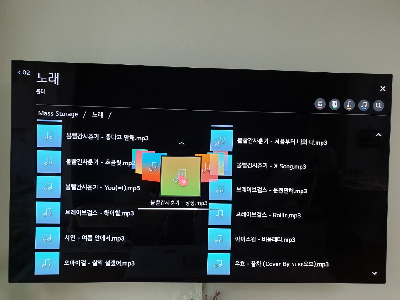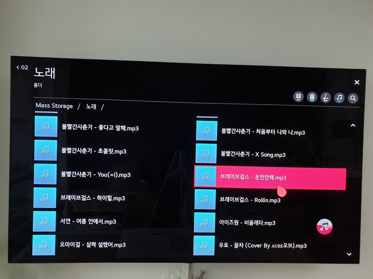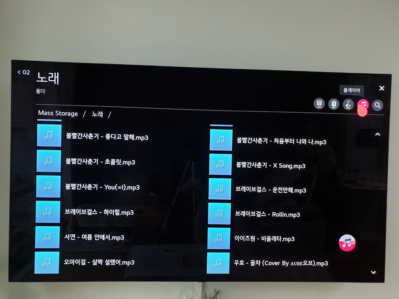 그리고 리모컨의 왼쪽/오른쪽 버튼을 이용해서 다른 음악을 선택할 수 있습니다.