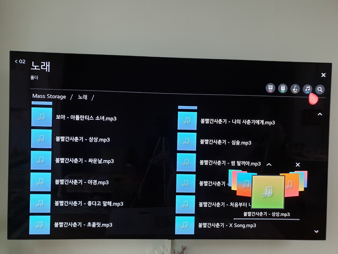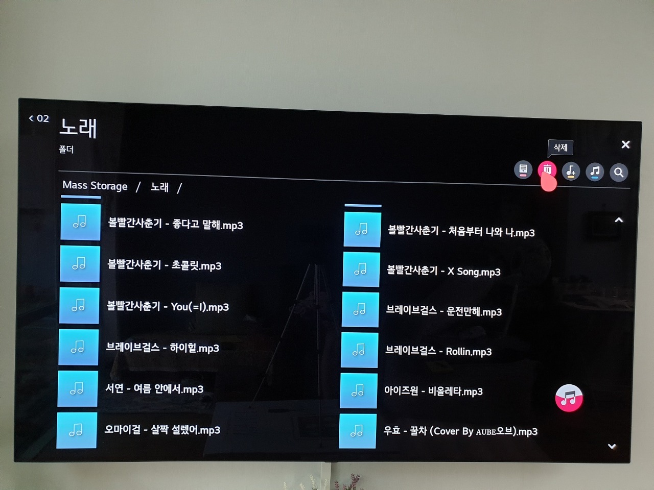 리모컨의 홈 버튼을 눌러 음악으로 진입 합니다,