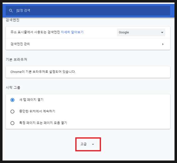 2. 화면을 가장 아래로 내린 뒤에 [고급] 선택