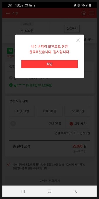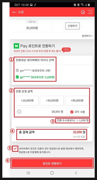 ① 네이버 포인트 전환 시 6%의 수수료가 부과됩니다.