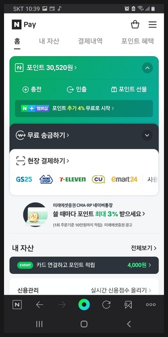 네이버 앱에 들어가보니 포인트가 들어온 것을 확인할 수 있습니다.