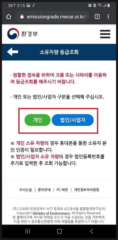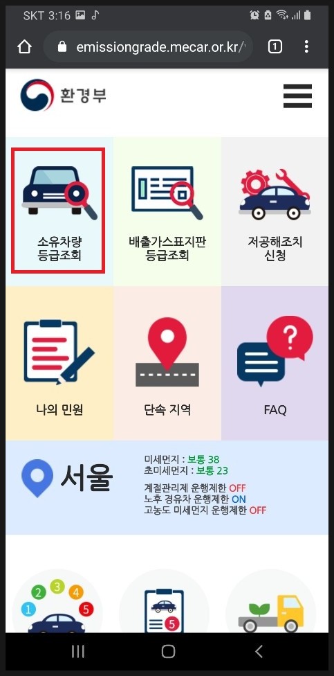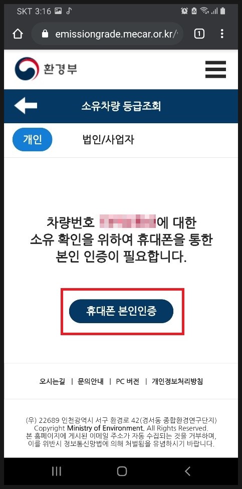 3. 차량번호 혹은 차대번호를 입력한 뒤 [조회]를 선택합니다.