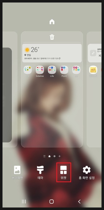 아래에 있는 위젯을 터치 합니다.